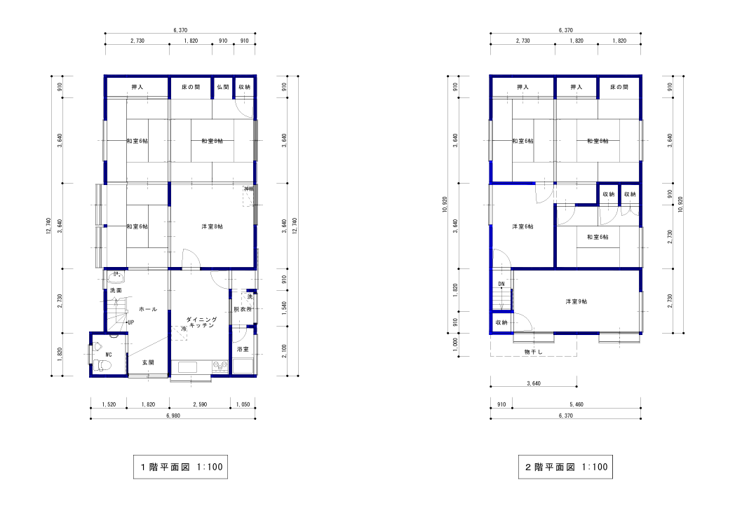 青のアイコンは当該空き家物件 赤のアイコンは周辺お試し居住施設です。
