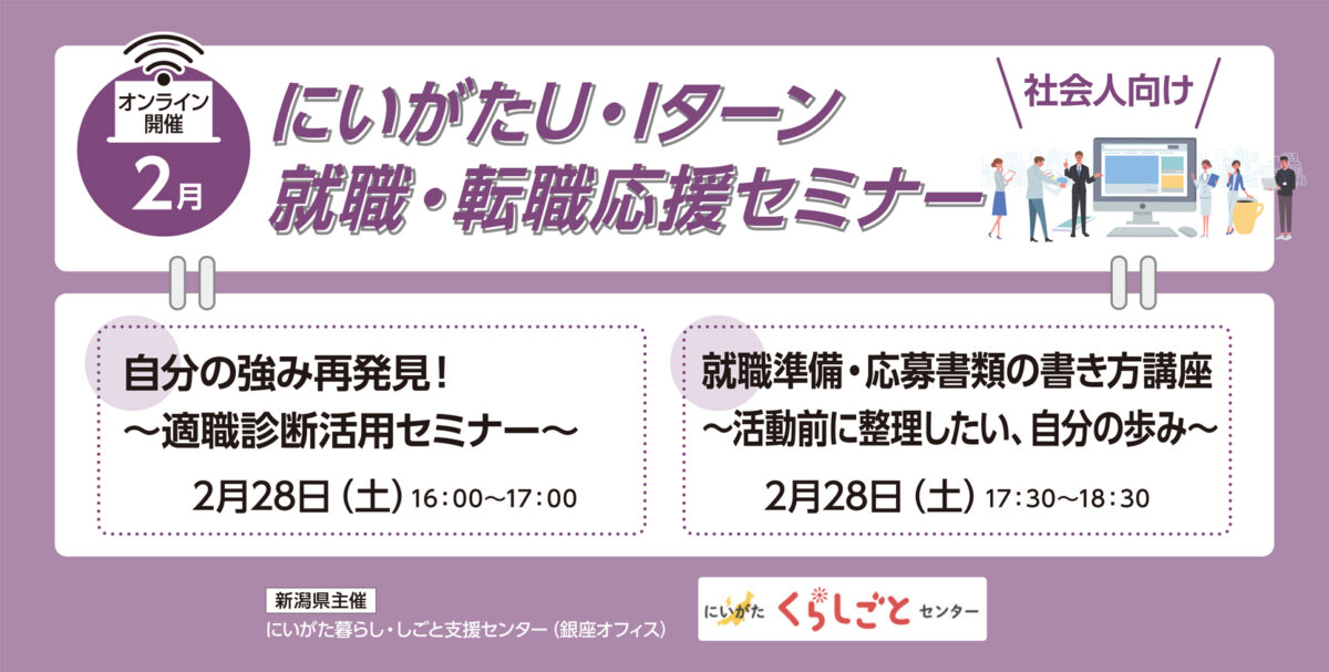 【10月開催】にいがた U・Iターン就職・転職応援セミナー(学生・社会人向け)を開催します。(オンライン開催)