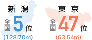新潟というと雪のイメージがあるでしょうが、海岸平野部など積雪がほとんどない地域もあります。また、積雪量の多い中山間地でも道路除雪が進み、生活に大きな影響がでることはほとんどありません。
