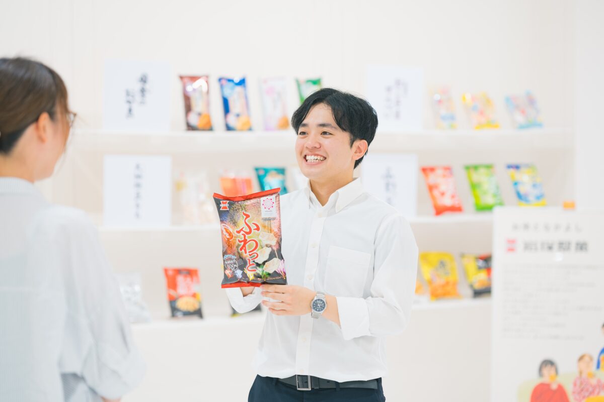 イベントに出展すると「いつも岩塚製菓食べているよ」「おいしいよね」とお客様から声をかけていただくことがあって、本当に嬉しいなと思います。消費者に直接届く商品を扱う醍醐味ですね。